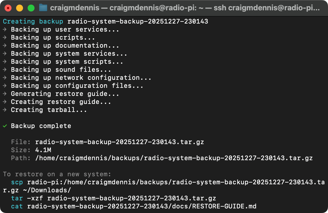 Backup — I want to be able to back up all relevant files that I change. I also want to include included a restore document for file locations and commands to run after.