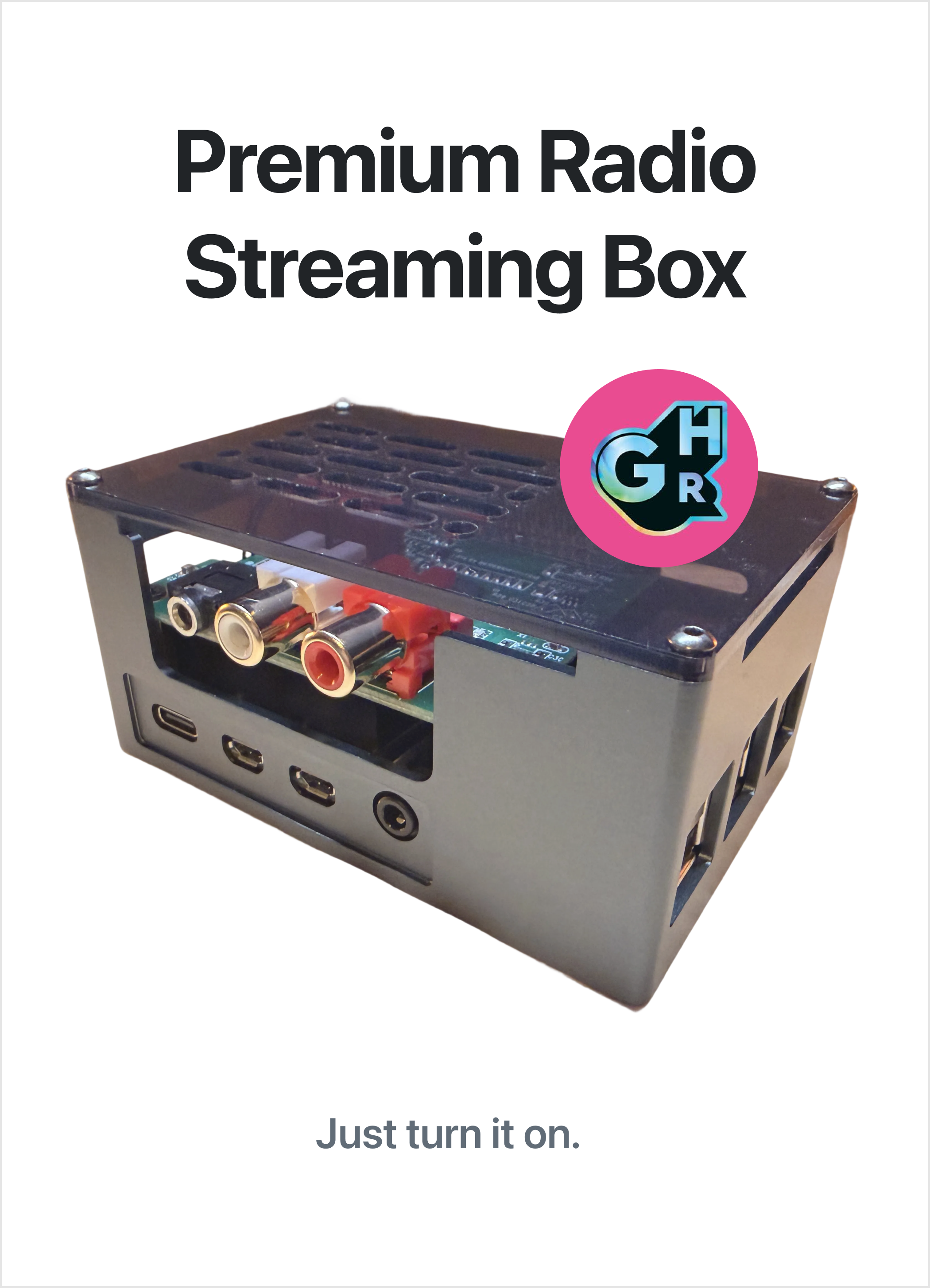 The always-on, zero-setup, plug-and-play Premium Radio Streaming Box.