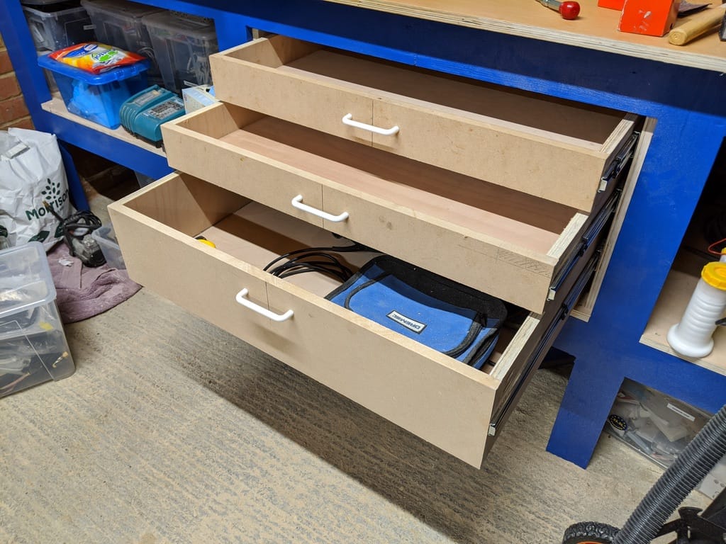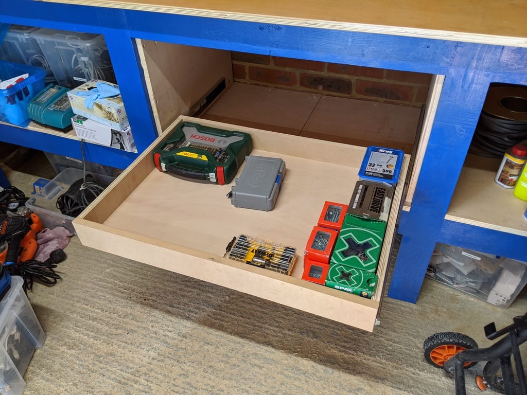 I needed drawers. I've got lots of small tools and fixings and having them on display makes the space feel cluttered. I've never made drawers before and I learned a lot in the process.