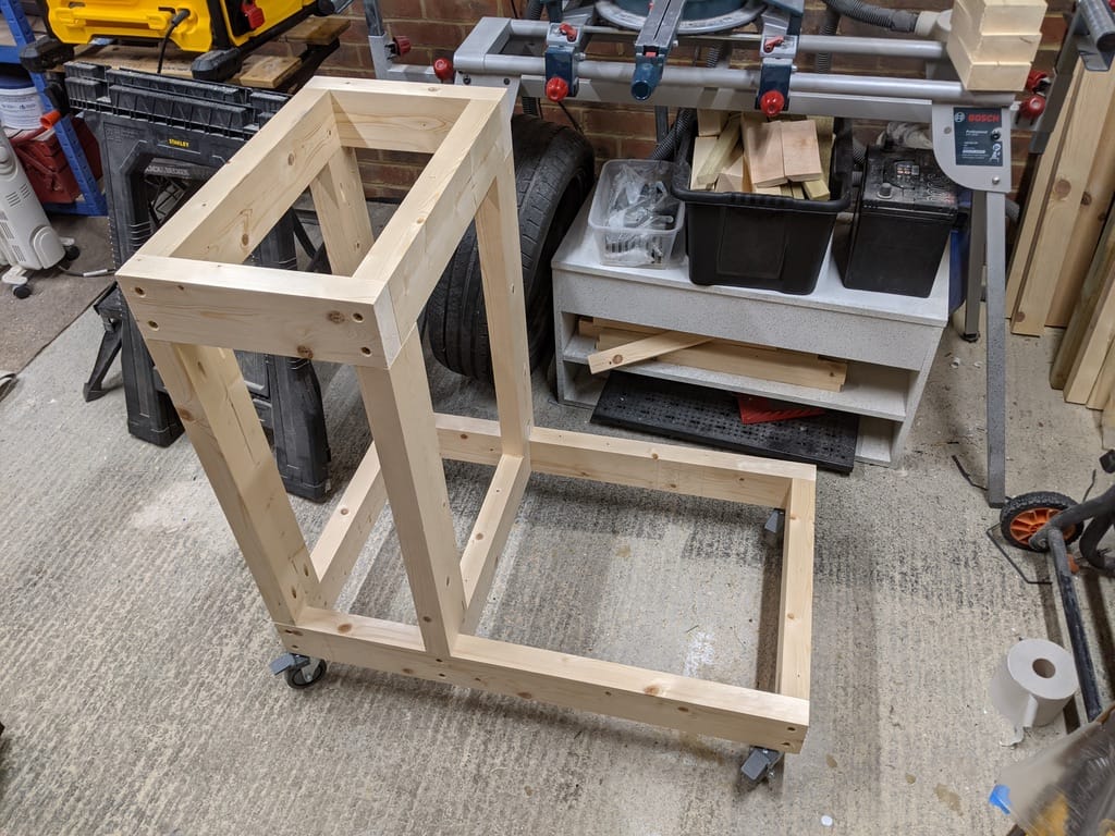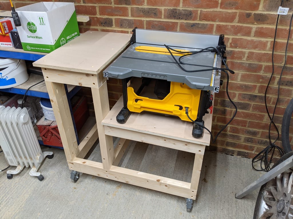 I bought a decent contractor table saw and proceeded to build a little cart for it to store accessories as well as give me a little support on the out-feed side.