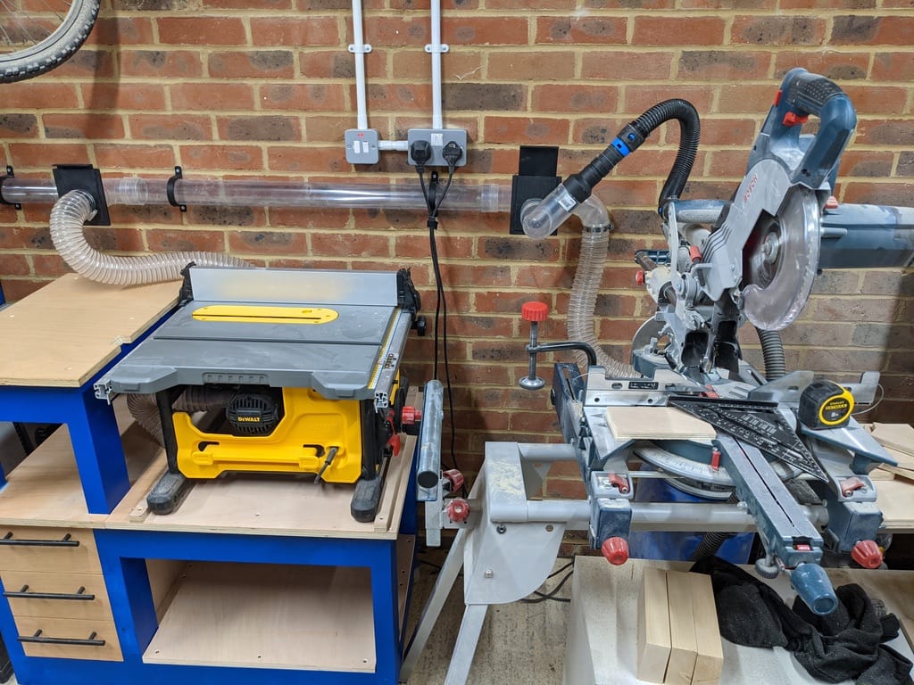 Dust collection is important and I was gifted a shop vaccuum cleaning which I set up with some dust collection pipes and blast gates to ensure a good level of suction from all of my tools.